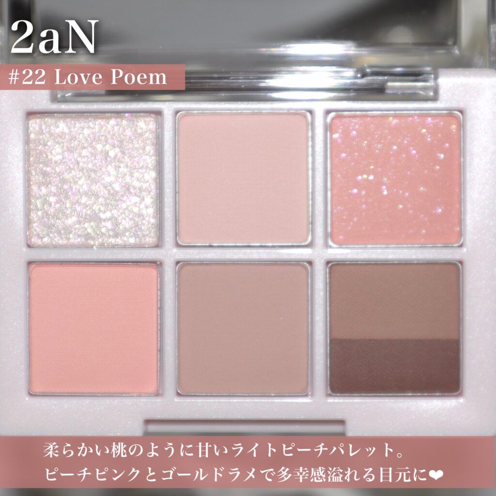 人気のベターミーアイパレットの新色22 ラブポエムは、柔らかい桃のように甘いライトピーチパレット。